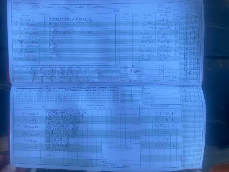 Fortunately for Blakedown their number 4 Stokes (a relation?) stuck around and managed a few lusty blows to take the Blakedown innings to a semi respectable score of 121 for 8 from 35 overs (the game being shortened due to the heat).